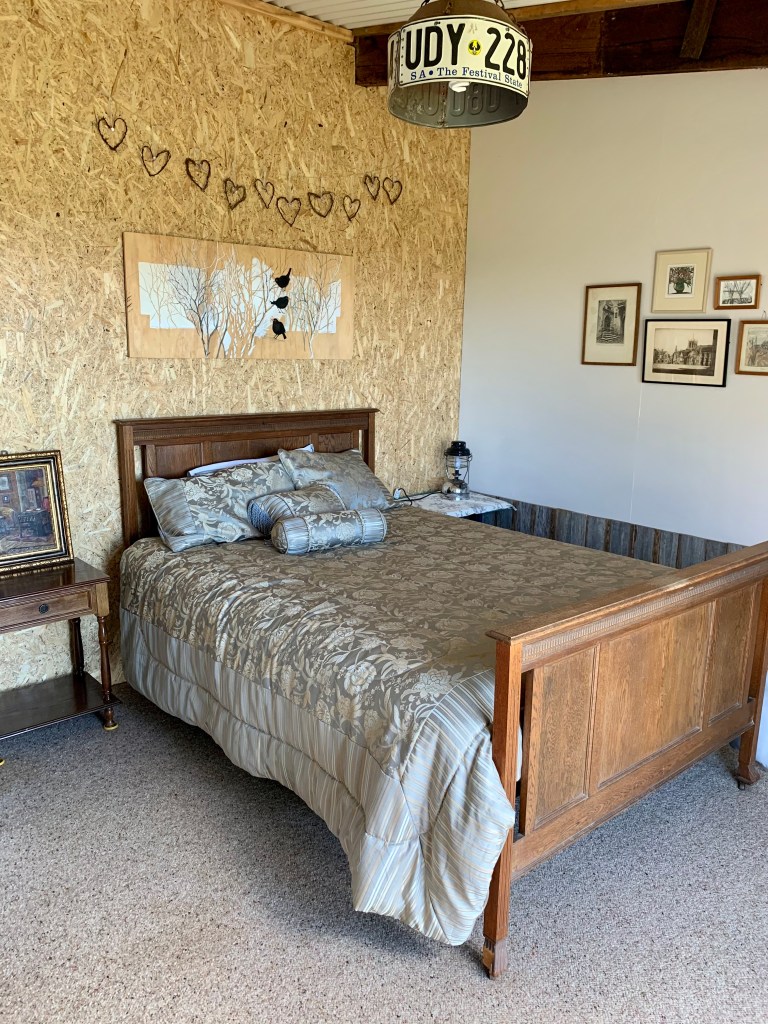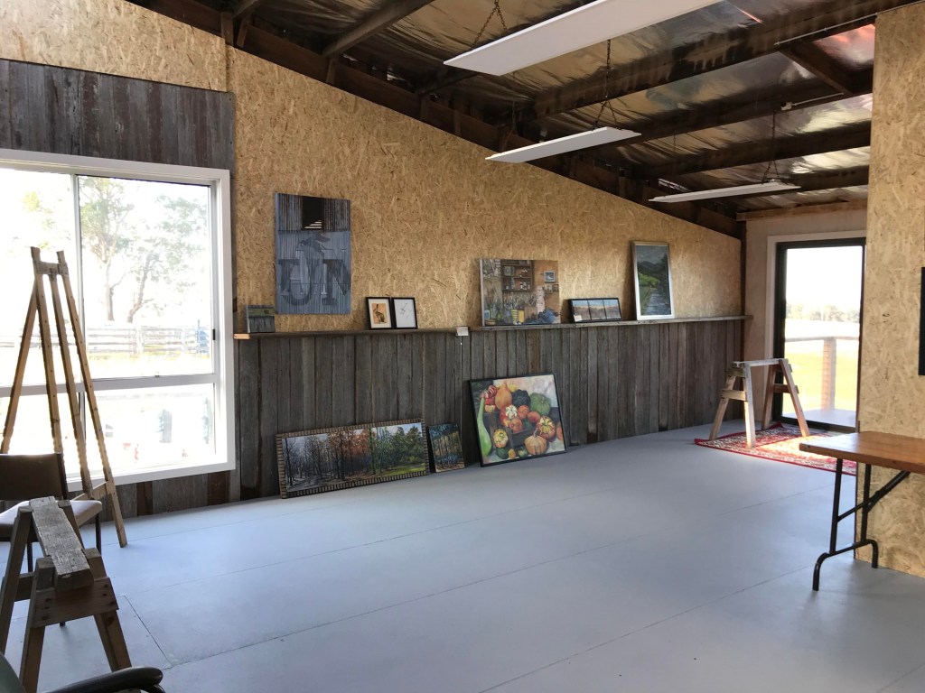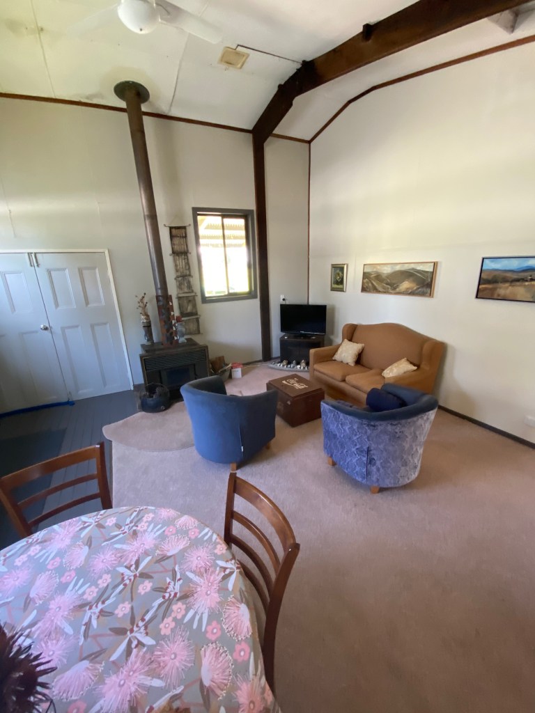 A very pleasantly and creatively renovated shearing shed, with all the comforts and more. 2 very comfortable bedrooms, kitchen and living area, walk through bathroom. L shaped Studio Space with lounge area, large deck with panoramic views, sheltered and sunny, front entrance(ramp)and verandah area undercover. ( Workshop area.)